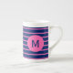 Monogram Royal Blue och Shock rosa Rand Benporslin Mugg
