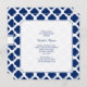 Royal blå och vit quatrefoil mönster med monogram inbjudningskort för möhippa.