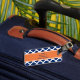Monogram Royal Blue Quatrefoil Mönster med Orange Bagagebricka
