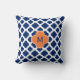 Monogram Royal Blue Quatrefoil Mönster med Orange Kudde