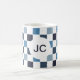 Monogram Rutigt Blå Vitt Modernt Enkelt Kaffemugg