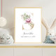 Monogram S Rosa White Blommigt Guld Brev Nursery Poster