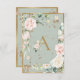 Monogram Sage Grönt Blommigt Elegant Brev A Tack Kort
