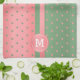 Monogram Sage Grönt och Coral Polka Dot Kökshandduk