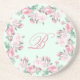 Personlig i monogramsandsten underlägg med ditt monogram. Rosa blommigt, ro dekoration på mint grönt bakgrund. Lägg till ditt eget monogram.