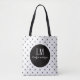 This elegant tote bag features a refined white and black bow design paired with a personalized script monogram. Designed for everyday sophistication, it balances clean typography with a soft, feminine accent. The neutral yet polished palette makes it suitable for professional use, casual outings, or thoughtful gifting. A timeless accessory that complements modern wardrobes while maintaining a quiet luxury aesthetic.