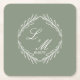 Monogram Script Gren Sage Grönt Bröllop Underlägg Papper Kvadrat