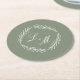 Monogram Script Gren Sage Grönt Bröllop Underlägg Papper Rund