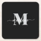 Monogram Silver Black White Personal Underlägg Papper Kvadrat