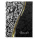 Elegant metallisk grått och kolv av svart blommigt med lodrät från silver och guld vågigt rand. Anpassningsbar monogram