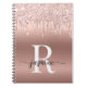 Monogram skrift rosa guld metall glitterdropar anteckningsbok