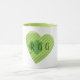 En Monogramdesign med parets initialer, den här St. Patrick's Day mugg, har ett grönt hjärta med en stripe design. I hjärtat finns en grönt klöver med en mall för monogrammering av initialer. Köp din idag! Bild skapat av: PretypeGrafik-design (https://www.etsy.com/shop/Prettygrafikdesign)
