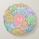 Monogram Succulents Watercolor Colorful Pastel Rund Kudde