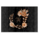 Personligt monogram svart, brunt och persikofärg blomster skärbräda. Finns i både rektangel och cirkelstorlekar.
