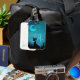Monogram svart katt stjärnhimmel illustration bagagebricka