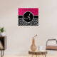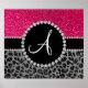 Monogram svart leopard rosa glitter poster