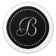 Keramisk lådknapp med ett runt svart monogram gräns med en vit prickaccent och ett skript med monogram initialt. Anpassa till att börja med monogrammet med den enkla mallen. Teckensnitt färg, stil, storleka teckensnitt och vit bakgrundscirkel/punkter färg är anpassade.
