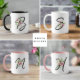 Tillsätt en djärv och elegant touch i din dagliga rutin med denna Monogram Svart Typografi Färgglada Blommor Mugg. Med ett stilrent svart monogram i par med livfulla, färgglada blomaccent, förenar denna personliga mugg modern typografi med glad charme.