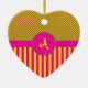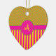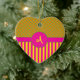 Monogrammed Tartan HJÄRTFORMADE ORNAMENTS, Tutti Frutti Gult-är en grafisk konstdesign. Den översta delen av konstruktionen är tartan mönster i roligt galna färg, inklusive: gult/rosa/grönt/lila och rött. Den är färglös! Konstruktionens grund är gult och rosa ränder med en liten nyare grönt rand också. I mitten finns ett rosa-band som trimmas i nylon med oregelbunden märkre av monogram. Märkrn är rosa i mitten, trimmad i nybörjare. Alfabetet brev ligger i en ljus gult. Redigera brev till kostym.