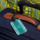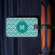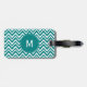 Monogram Teal and White Chevron Mönster Bagagebricka