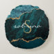 Monogram Teal Blue Guld Agate Geode Rund Kudde