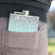 Silver och Aqua Teal Blue Faux Gnistra Glitter Monogram Namn Party kolv. Det gör perfekten söt 16-årsjubileum, bröllop, möhippa, årsdag, babydusch eller bachelorette-fest för någon som glam lyxen och chic stilar i kärlek.