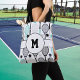 Sporty monogram tennis tote bag med en snyggt mönster av tennis rackets och bollar i svart, grått och teal. Perfekt för tennisspelare, tränare och fläkt att bära utrustning, snacks eller personliga artiklar för matcher, träning eller turneringar. Anpassa med ditt första eller namn om du vill få en personlig beröring. Gör en tankfull gåva till födelsedagar, team firande eller tennis-loving-vänner. Varaktig och mångsidig för både på och utanför domstolen.