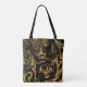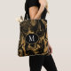 Monogram Tote Bag Guld Glitter mot svart bakgrund Tygkasse