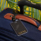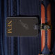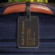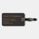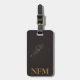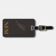Bagagetagg med svart Labrador-hund, inledande mongram/namn, namn och adress på svart bakgrund. Anpassa med dina inledande/inledande/inledande/inledande/namn, namn och adress med hjälp av de enkla mallarna. Teckensnitt färg, stil, storlek teckensnitt och svart bakgrund är anpassade.