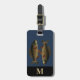 Bagagetagg med grått- och grönt karp-fisk, inledande mongram/namn på svart rand-monogram ram, namn och adress på blå bakgrund. Anpassa med dina inledande/inledande/inledande/inledande/namn, namn och adress med hjälp av de enkla mallarna. Teckensnitt färg, stil, storleka teckensnitt och blå färg är anpassade.