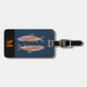 Bagagetagg med grått- och orange örutfisk, inledande mongram/namn på ett svart rand monogram ram, namn och adress på blå bakgrund. Anpassa med dina inledande/inledande/inledande/inledande/namn, namn och adress med hjälp av de enkla mallarna. Teckensnitt färg, stil, storleka teckensnitt och blå färg är anpassade.