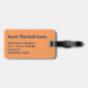 Bagagetagg med uppgifter om namn och adress tillsammans med handflatan träd på en vit strand med blått hav vinkarare och en solnedgång med moln. Anpassa med din eller dina initialer för monogram, namn och adress med hjälp av de enkla mallarna. Teckensnitt färg, stil och storlekt teckensnitt är anpassade. Perfekt för varje respåse.