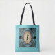 Anpassa den här gigantiska "en av en typ"-monogramturkos Snöre Tote Bag! Den har Eleganten Antique Turcos Snöre och en Tan Decorative Oval på en blandad turkos och svart bakgrund! Original Art Design av Kerry Miller.