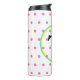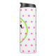 Söt rosa polka dots mot vit bakgrund. Anpassa med den inledande monogrammet i svart text i mitten av den blå gulten. Originaldesign från TamiraZDesign.
