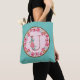 Monogram U Brev med Peony Flower Image Tote Bag Tygkasse