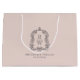 Den här eleganten innehåller modern bröllop-presentväska med klassisk grått av kol på rosa. En vapensköld för utandning av träkol grått vintage- omger parets monogram initialer, med nedanstående datum för namn och bröllop.