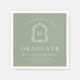 Den här klassiska napkin-designen för elegant har en vit monogramssymbol i ett öppet serif-teckensnitt som omges av en vintage line art acanthus-vapensköld på en sidbakgrund för grönten. Anpassa texten till student namn, skolår och klassår. Perfekt för högskoleexamen eller högskoleexamen.