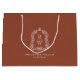 Den här eleganten har en modern bröllop-presentväska med klassisk vit text på en terracotta-bakgrund. En vit vintage folieutandning omger parets monogram initialer, med vapenskölden namn och bröllop nedan.
