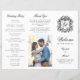 Dessa tredubbla bröllopsprogram kom som en plan lakan av papper som ska vikas manuellt. Vapenskölden elegant i monogram har initialerna för briden och trimmen i finare-skriptteckensnitt på framsidan. Programmen är perfekter för långa ceremonier, med ceremonier på de tre inre klaffarna. Utsidan har bröllopsfesten, tackkort och ett foto av paret lycklig.