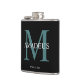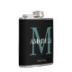 Elegant Monogrammed Marskalkar Black Flask Ett underbart tack för en groomsman. Slimmad, elegant, svart fodral med ett monogram för första namn och stor turk för första eller sista brev.