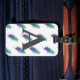 Monogram Watercolor Luggage Tag Den här lilan och blå boho-luddkonstruktionen har ditt första utseende i mörk grått. Anpassa bagagetaggen med namn eller ändra texten till ditt eget personliga meddelande. Besök vår butik för att samordna tillbehör.