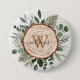 Monogram Vattenfärg Rustik Träskiva och Lövverk Knapp