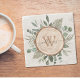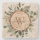 Monogram Vattenfärg Rustik Träskiva och Lövverk Stenunderlägg