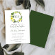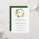 I bröllop-konstruktionen finns bruden och groomens monogram initialer i grönt som är inramad av en vattenfärgad krans av gult vår blommor och grönt bladverk. Anpassa texten med parets namn i handskriftsskript för elegant grönt och bröllop i grått för kol. Baksidan är en solid skuggning av grönt.