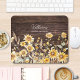 Vi presenterar vår Monogram Watercolor Gult Solros Fält Wood Mouse Pad . Med en vattenfärgad elegant som illustrerar solrosängen med mörk brun träbakgrund. Anpassa texten och gör den till din!