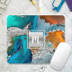 Monogram vattenfärgsmarmor silver turkos orange musmatta
