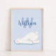 Cute initial monogram baby namn på blå polar och vinterbjörn, daghem för perfekt, barnrum, sovrum, lekrum och annat rum. personligens första och monogram namn och baksida färg. Könsneutral design för både pojkar och flickor.
