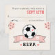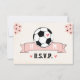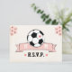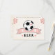 Ett fotledarkort med fotboll med ett bröllop OSA med ett hjärta på det och rosa blommigt accentuerar hörnet och rosans banderoll som kan vara personlig med initialerna på bruden och trippen. Den här roligten och det berömvärda fotbolls-temat bröllop-responskortet är perfekt för det par som kärlek ska träna eller spela eller titta på fotboll, eller futbol och fotboll, som resten av världen känner till! Art © Chrissy H. Studios, LLC. Alla höger reserverade.