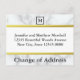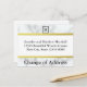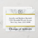 Behöver du göra ett flyttmeddelande? Detta vykort har en vit marmorerad textur och du kan anpassa kortet med din monogram, namn och ny adress. Överst finns en fyrkant för din monogram. Längst ner finns anpassad svart text (visas: 'Adressändring'). I mitten finns en vit bakgrund för ditt namn och din nya adress.