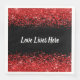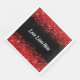 Monogram - vit text på svart med röd glitter | pappersservett